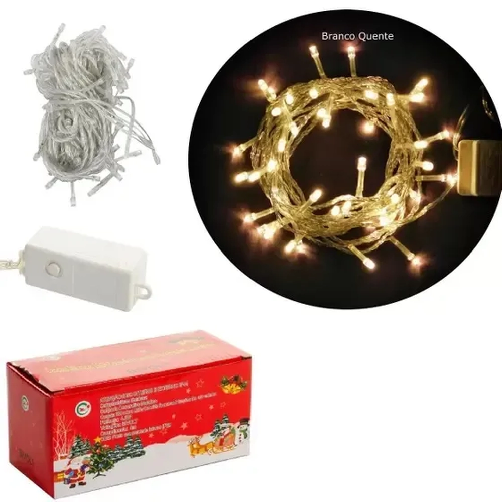 15107 PISCA C/100 LEDS WARM FIO TRANSPARENTE 10MTS 110V