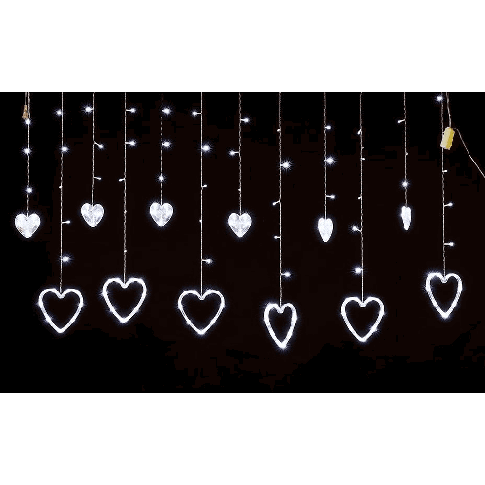 4021 CASCATA C/138 LEDS CORACAO BRANCO 8FUNC FIO TRANSP 110V