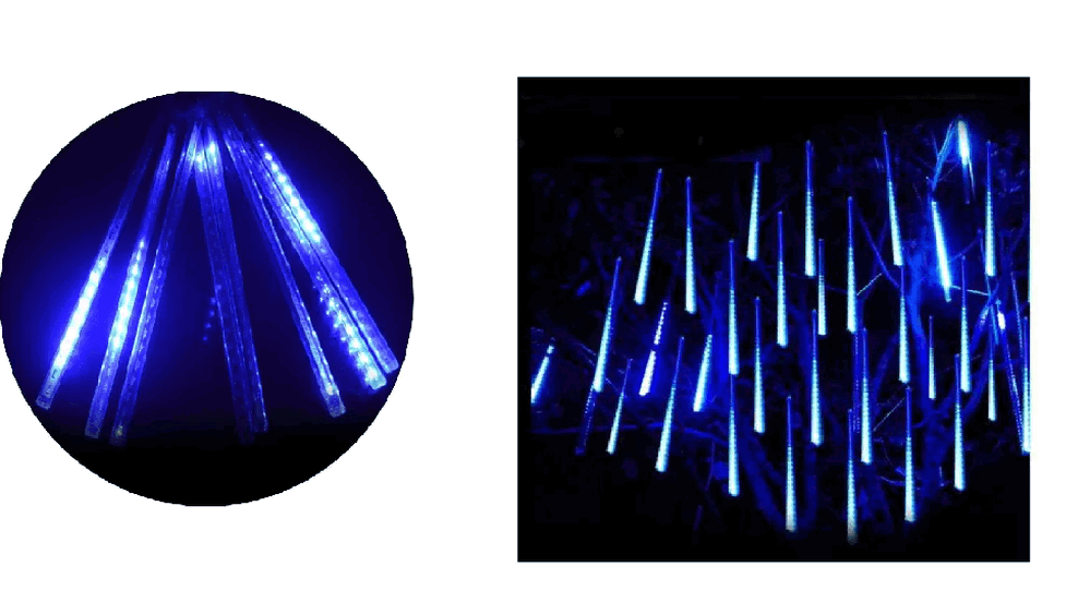 712 CASCATA C/08 BASTOES SNOWFALL 42CM AZUL FIO TRANSP BIVOL