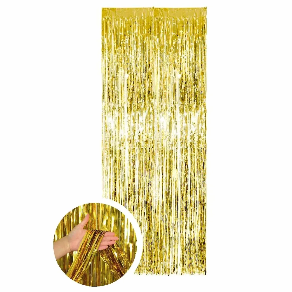 904349 CORTINA METALIZADA DOURADA HOLOGRAFICA 2X1M