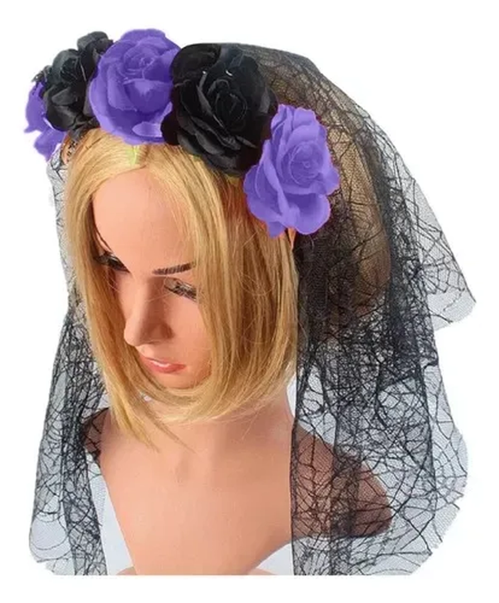 906379 TIARA VÉU C/ FLOR ROXA