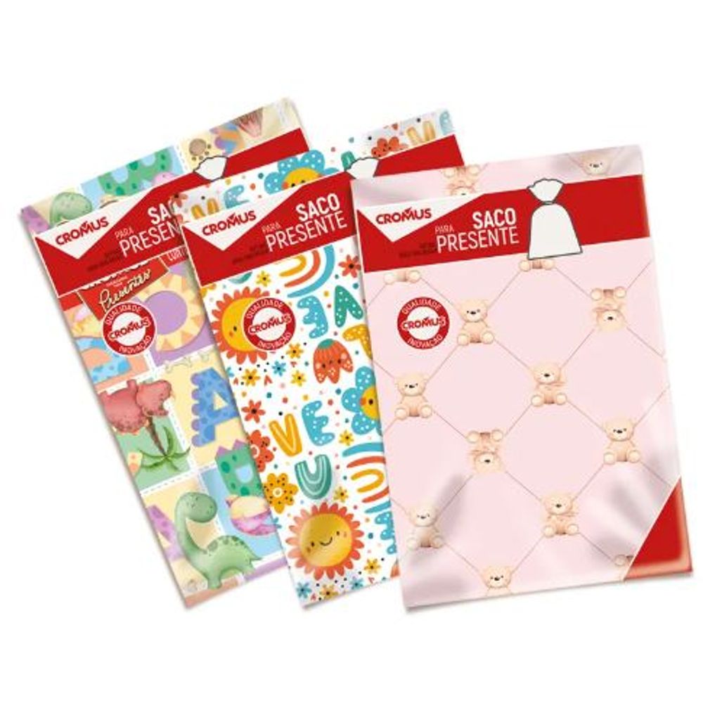 99580057 SACO P/PRESENTE METAL/PEROL 25X37 BEBE SORT C/50 ESTAMPA SORTIDA