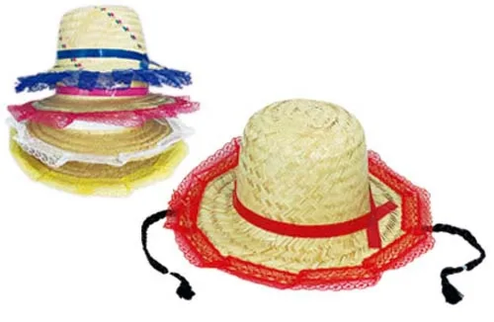 080 CHAPEU DE PALHA TRANCA C/RENDA - CORES SORTIDAS