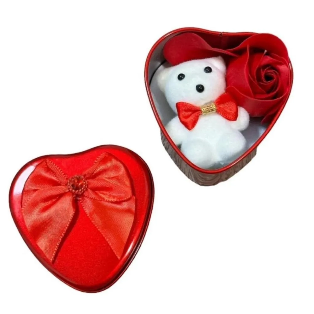 GF133702 URSINHO C/ROSA NA CAIXA CORACAO 6CM