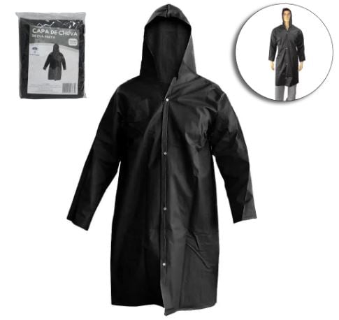 IS0034 CAPA DE CHUVA EVA PRETA ADULTA