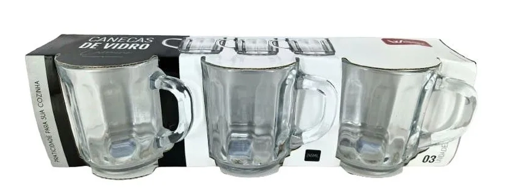 WG21949 CJ 3 CANECAS VIDRO CARMINE TRANSPARENTE 245ML