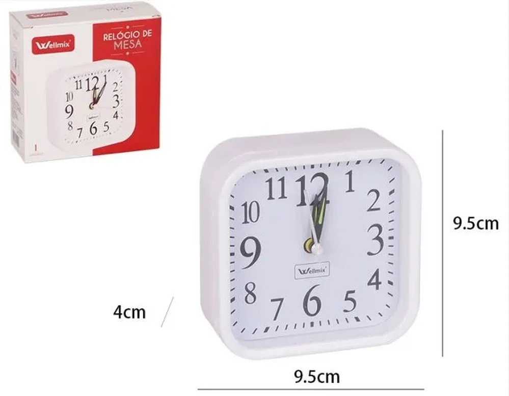 WX13600 RELOGIO DE MESA QUADRADO PP BRANCO 10CM